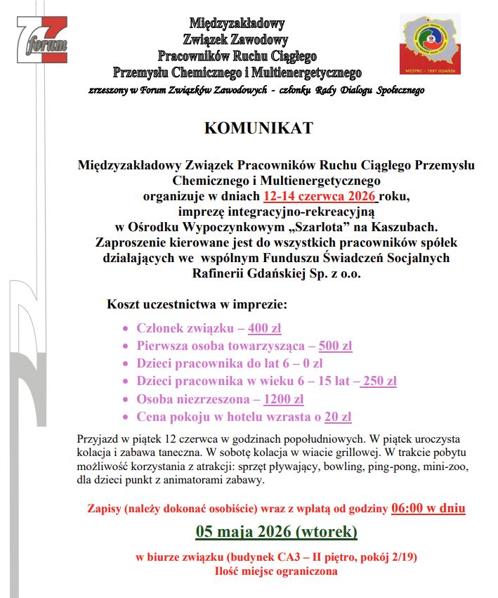 Międzyzakładowy Związek Zawodowy Pracowników Ruchu Ciągłego Grupy LotosMiędzyzakładowy Związek Zawodowy Pracowników Ruchu Ciągłego Grupy LotosMiędzyzakładowy Związek Zawodowy Pracowników Ruchu Ciągłego Grupy Lotos